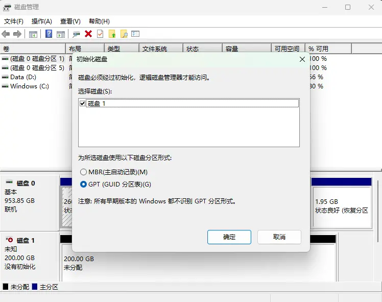 9. 系统会提示新磁盘初始化,点击【确定】。