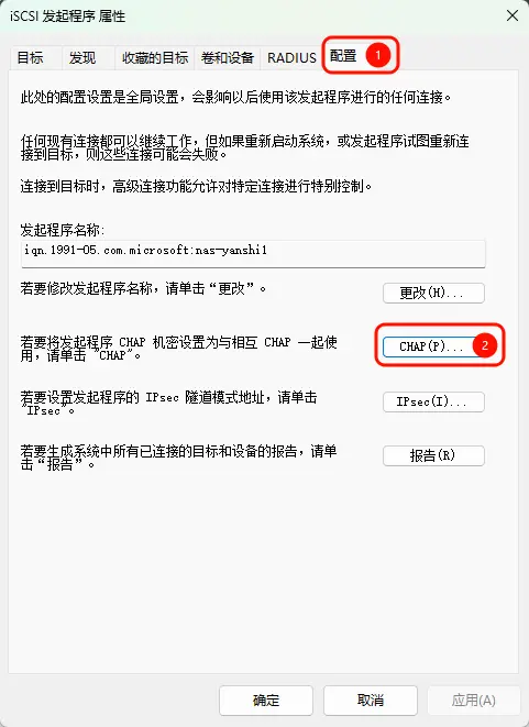 1. 切换到【配置】选项,点击【CHAP】按钮。