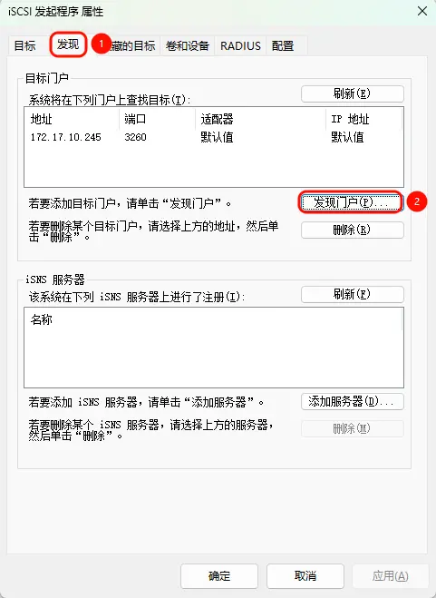 iSCSI 连接使用的端口号,必须与 NAS 上 SAN Manager > 设置 > iSCSI 服务端口 中配置的端口保持一致(默认端口为 3260,如有修改请确保同步)。