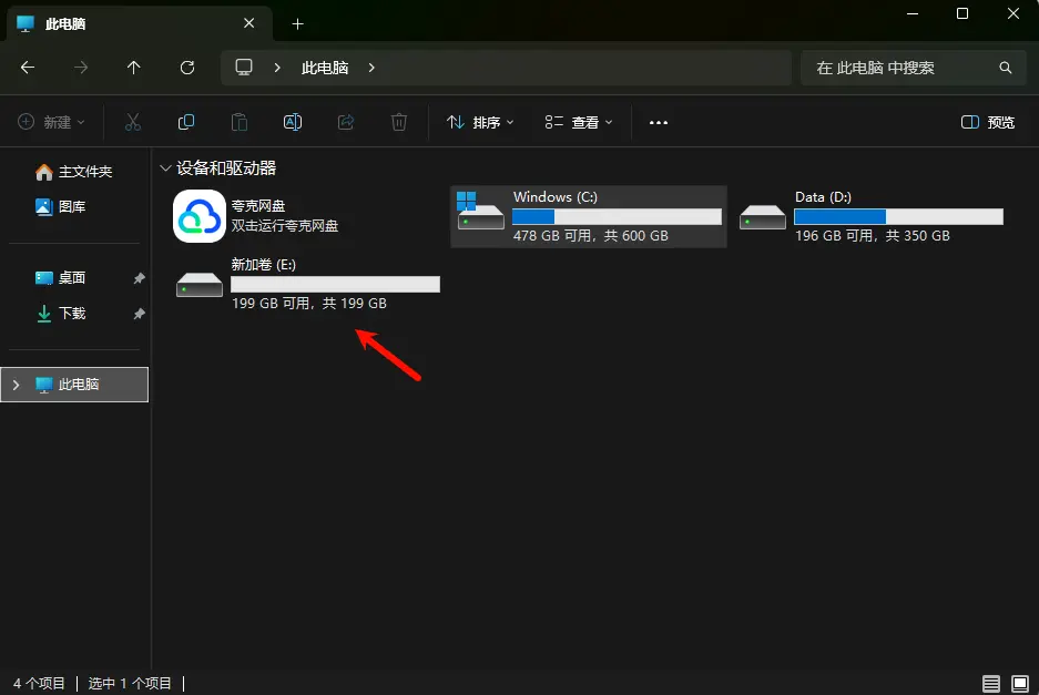 12. 格式化完成后,Windows 将自动为该卷分配盘符,此时可以像使用本地硬盘一样使用该 NAS 虚拟磁盘。