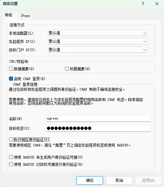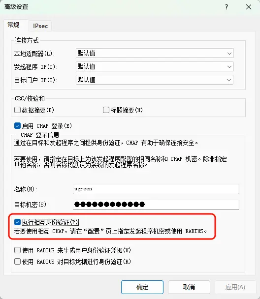 配置 CHAP 或相互 CHAP 验证(如有开启)