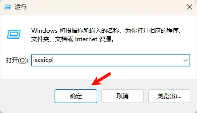 1. 按下 WIN+R,输入 iscsicpl,点击【确定】。